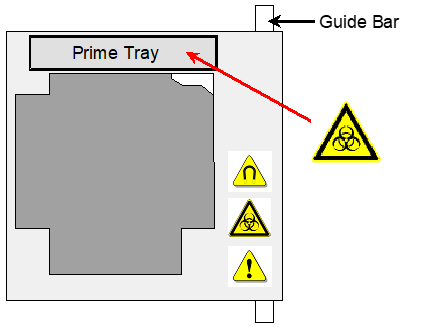 - Carefully slide the plate carrier with the prime tray at the rear over the guide bar.